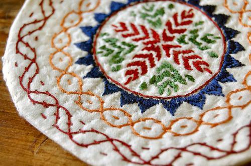 刺繍されているのはコースターだけでなく、バッグなども…